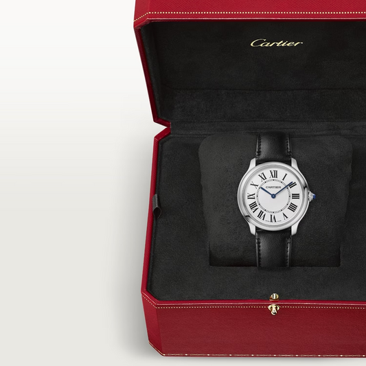 Cartier Ronde Must de Cartier Steel 36 MM - Black Strap - Silver Dial - WSRN0031
