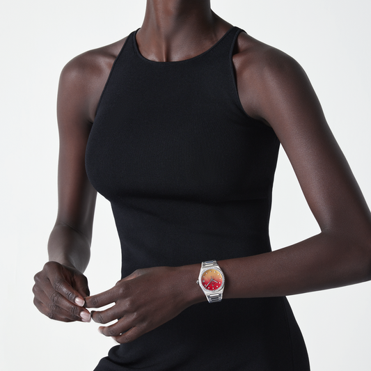 Zenith DEFY Midnight Sunset - 36 MM - Stainless Steel - Diamond Bezel - Red & Yellow Dial - 16.9200.670/33.MI001