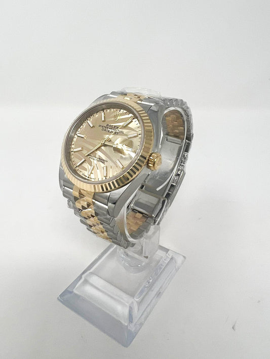 Rolex Stainless Steel And Yellow Gold Datejust - 36 MM - Jubilee Bracelet - Fluted Bezel - Golden Palm Motif Index Dial - 126233-0037