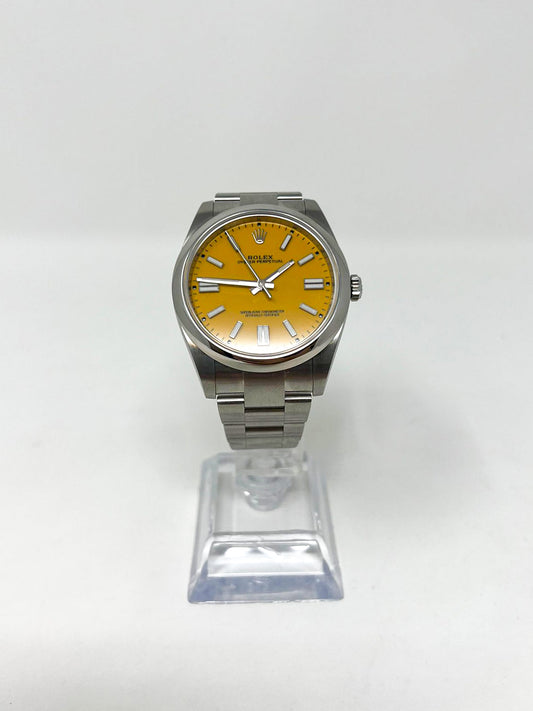 Rolex Stainless Steel Oyster Perpetual no date Watch - 41 MM - Oyster Bracelet - Yellow Dial - 124300 yio