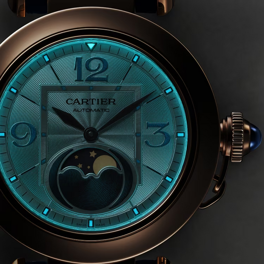 Cartier Pasha de Cartier Rose gold 35 MM - Blue Alligator Leather Strap - Diamond Bezel - Opaline Flinqué Dial - WJPA0020