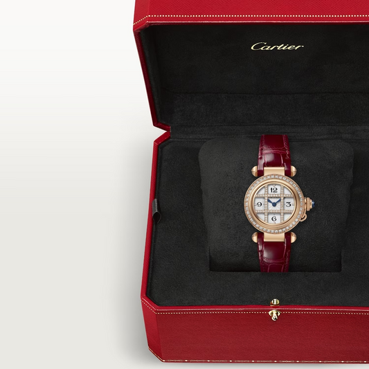 Cartier Pasha de Cartier Rose gold 30 MM - Red Alligator Leather Strap - Diamond Bezel - Opaline Flinqué Dial - WJPA0017