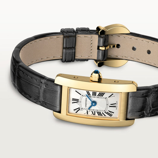 Cartier Tank Yellow Gold (Mini Model) 27 MM - Black Leather Strap - Yellow Gold Bezel - Silver Dial - WGTA0038