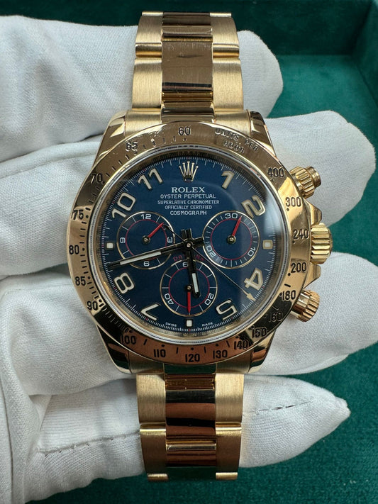 Rolex Daytona Chronograph - 40 MM - Yellow Gold - Blue Arabic Dial - 116528bla