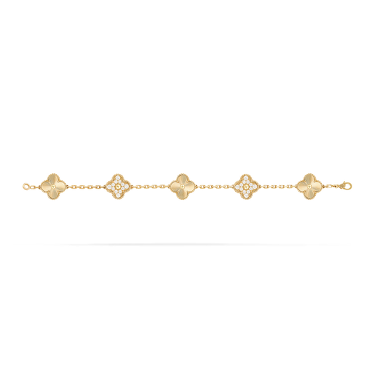 Van Cleef & Arpels Vintage Alhambra Bracelet - 18k Yellow Gold - Diamond - 5 Motifs - Tw. 1 ct - VCARP4KN00