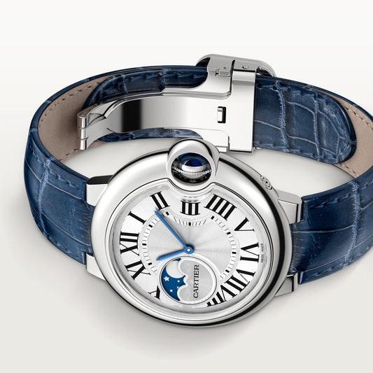 Cartier Ballon Bleu Stainless Steel 37 MM - Blue Leather Strap - White Dial - WSBB0029