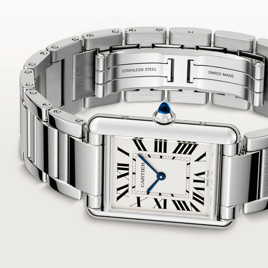 Cartier Tank Stainless Steel (Large Model) 30 MM - Stainless Steel Bracelet - Stainless Steel Bezel - White Dial - WSTA0005