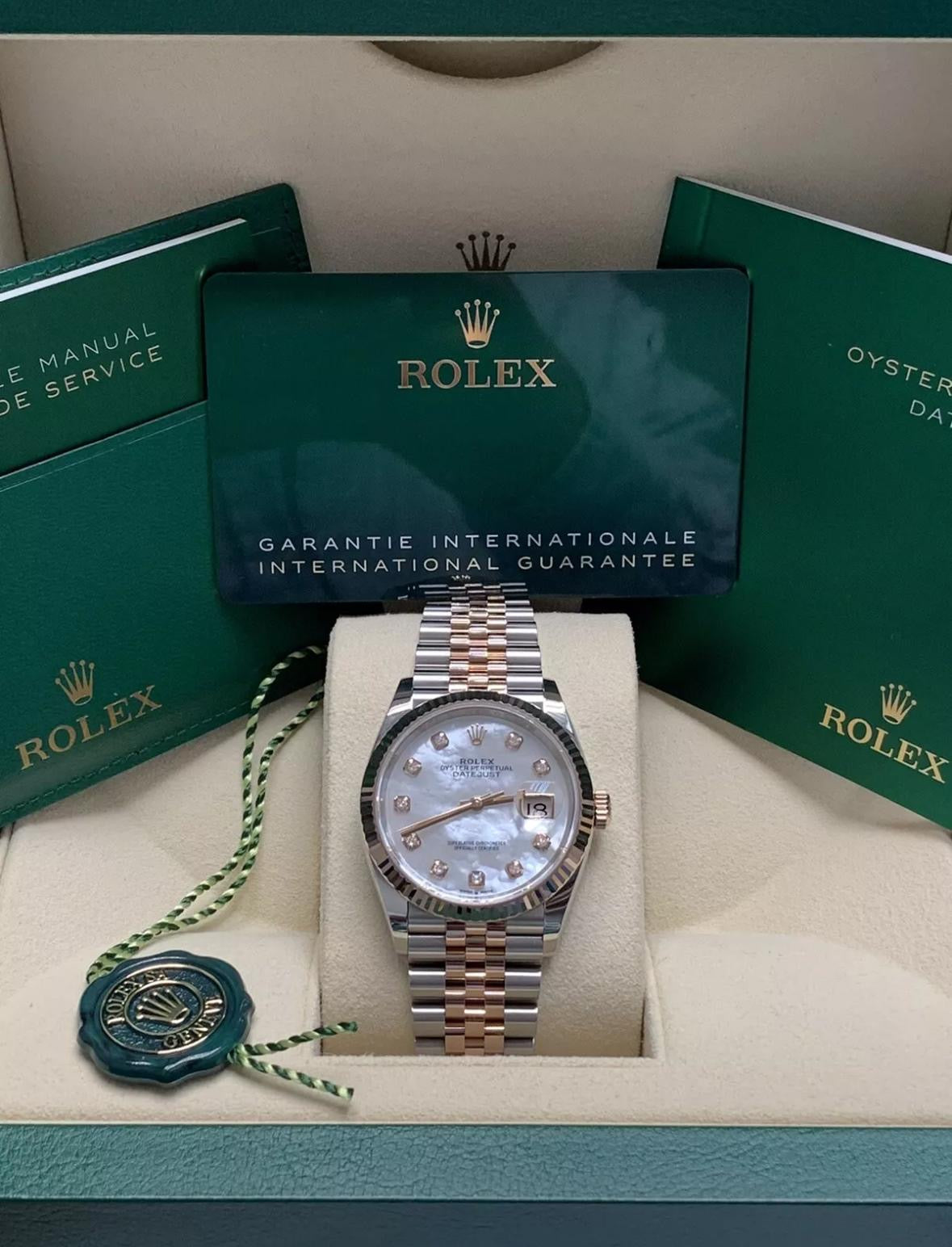 126231 36mm Datejust Jubilee Two Tone Rose Gold Mother Of Pearl Diamond Dial Brand New 2024 Complete Set $19,000