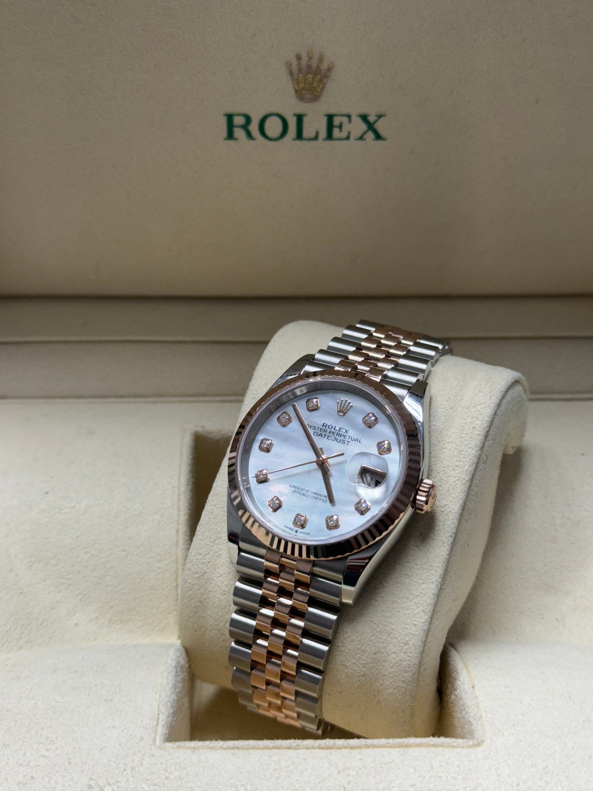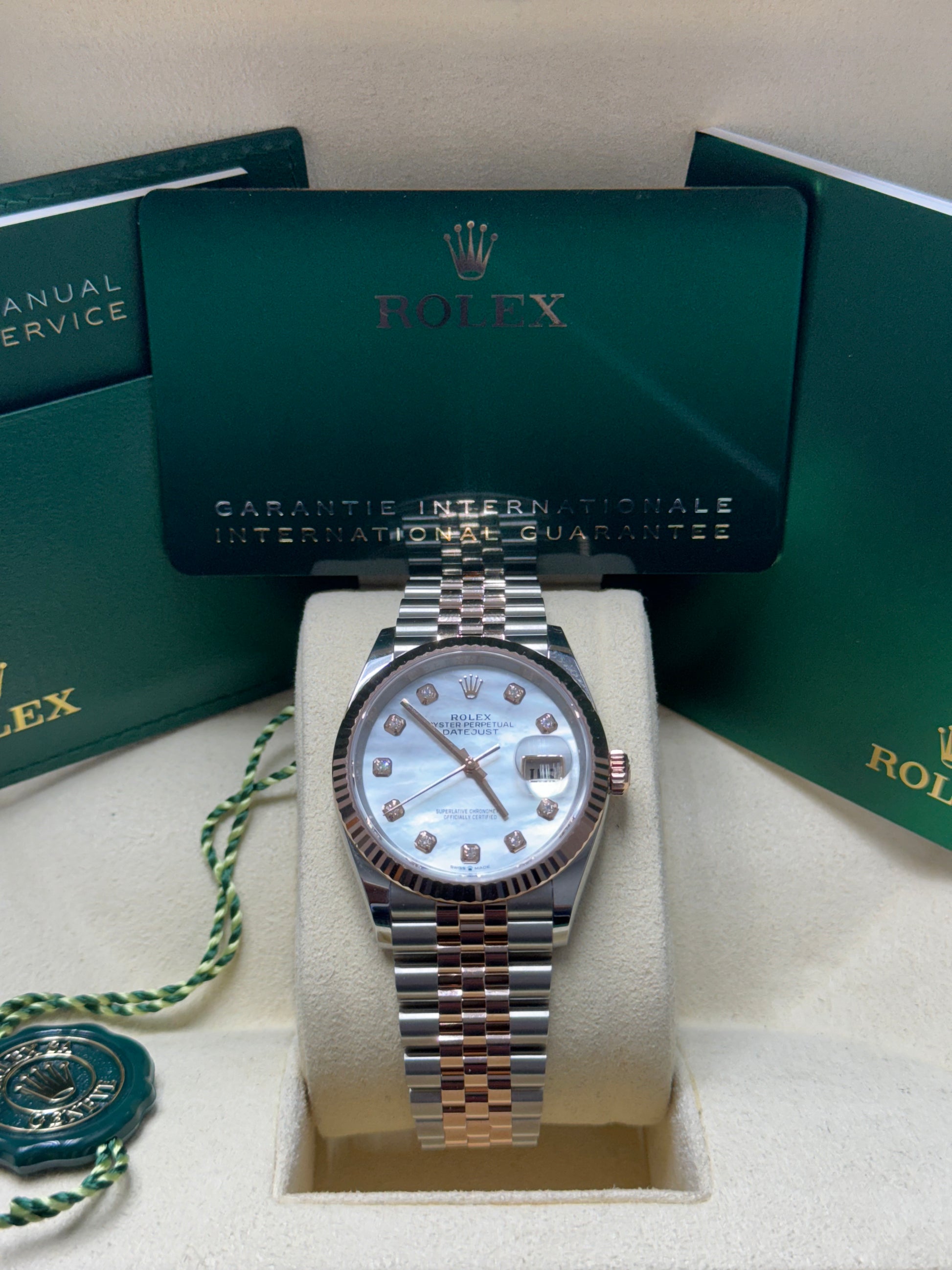 126231 Datejust 36mm Rose Gold Mother of Pearl Dial Jubilee Like New Complete Set $18,999
