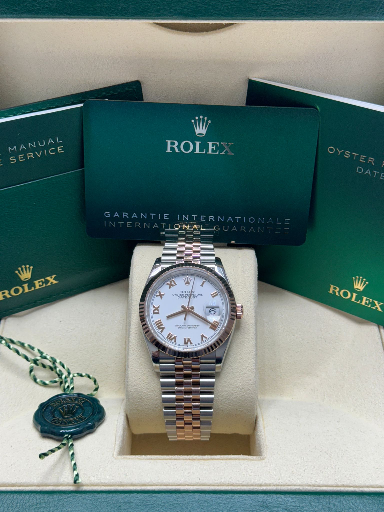 126231 Datejust 36mm Rose Gols Jubilee White Roman Like New Complete Set $14,299